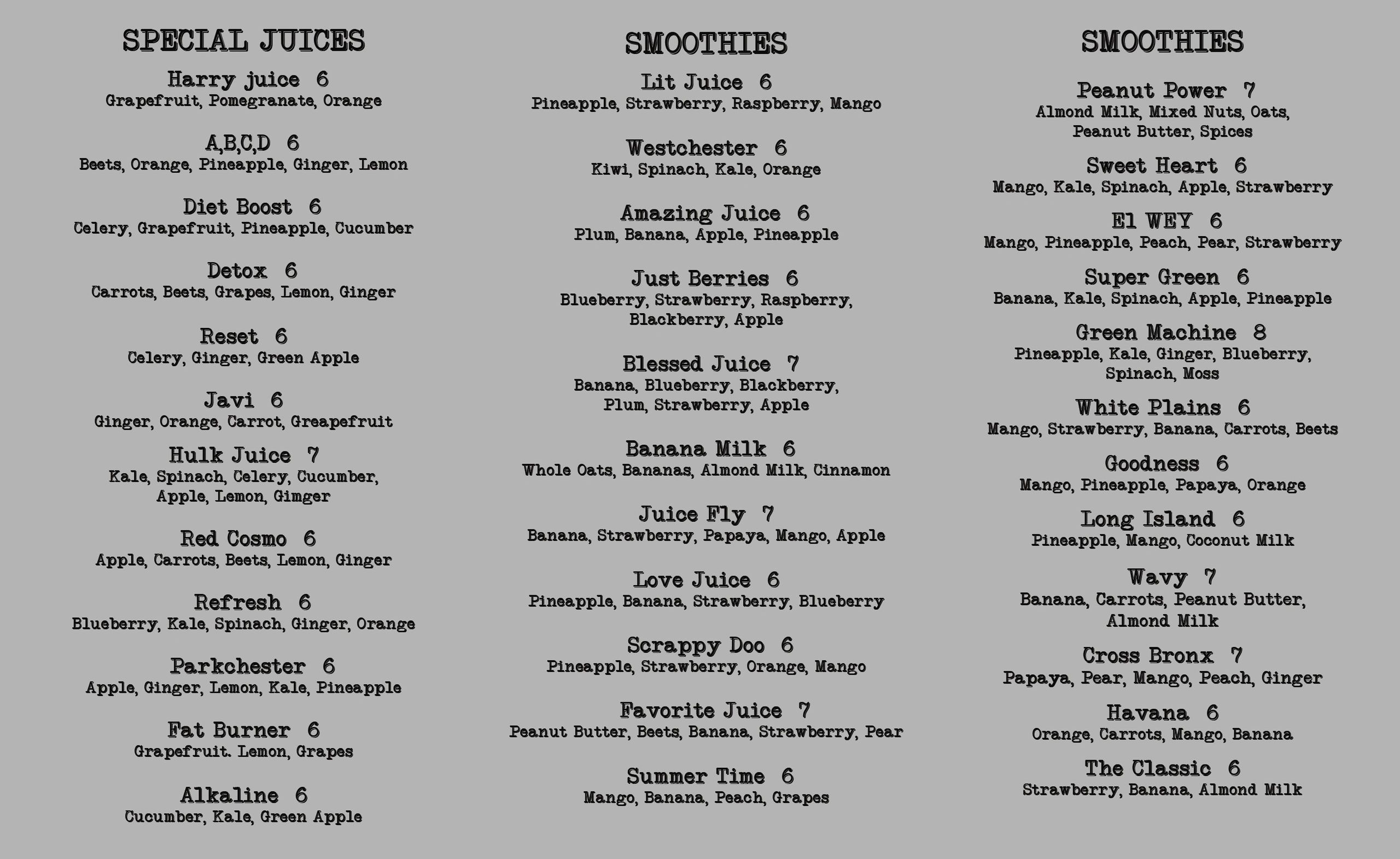 Menu SUBJECT TO CHANGE / VARIOUS ADD-ONS AVAILABLE / ask about our specials and off menu items